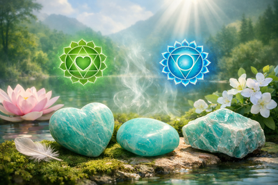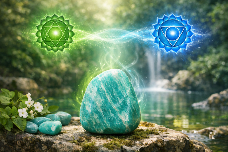 L’amazonite est principalement associée au chakra du cœur, centre énergétique de l’amour, de la compassion et de l’harmonie. En stimulant ce chakra, elle favorise l’ouverture affective et l’acceptation de soi.