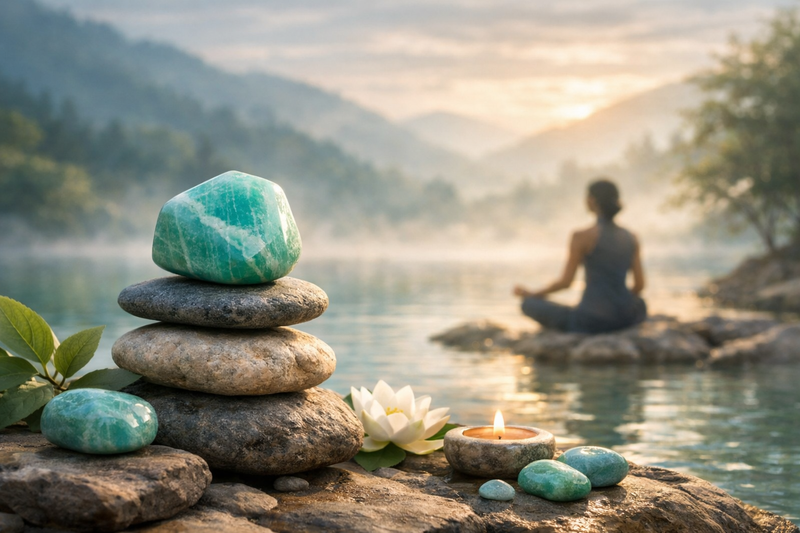 L’amazonite est particulièrement adaptée à la méditation axée sur le chakra du cœur. Placée au centre de la poitrine, elle aide à relâcher les tensions émotionnelles accumulées. Une visualisation simple consiste à imaginer une lumière verte ou turquoise douce qui se diffuse dans la poitrine, apaisant progressivement chaque émotion. Cette pratique favorise un relâchement profond et une sensation d’harmonie intérieure. Elle peut également être utilisée dans des exercices de pardon et de libération émotionnelle. En tenant la pierre dans la main, on peut poser l’intention de se libérer des rancœurs ou des blessures passées. Lorsqu’un conflit est présent, méditer avec l’amazonite permet de calmer les émotions avant d’engager une discussion. Elle aide à retrouver un alignement entre le cœur et la parole, afin de s’exprimer avec sincérité sans agressivité.