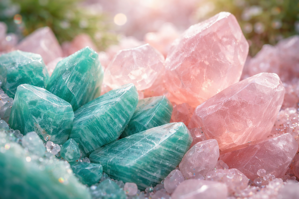 C’est une association que nous recommandons très souvent pour travailler en douceur sur le cœur. Le quartz rose favorise l’amour de soi, la tendresse et la guérison affective, tandis que l’amazonite aide à exprimer ses émotions avec calme et sincérité. Ensemble, elles créent un équilibre entre douceur émotionnelle et communication authentique. Cette combinaison est idéale dans les périodes de fragilité affective, de rupture ou de reconstruction personnelle.