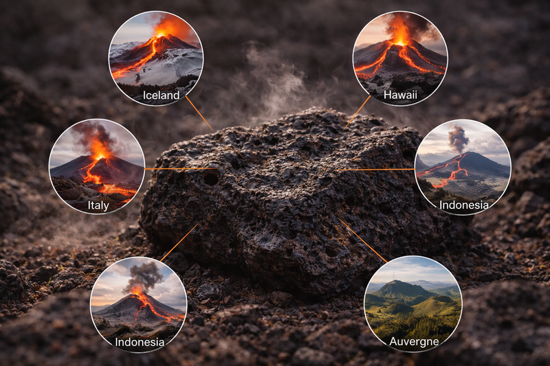 La pierre de lave se trouve dans les régions volcaniques actives ou anciennes à travers le monde. Parmi les zones les plus connues figurent l’Islande et Hawaï, célèbres pour leur activité volcanique spectaculaire.