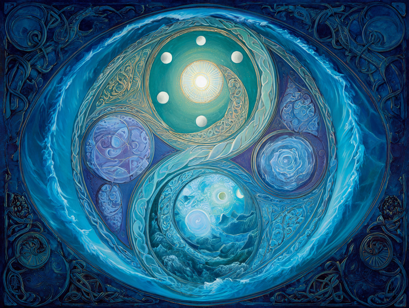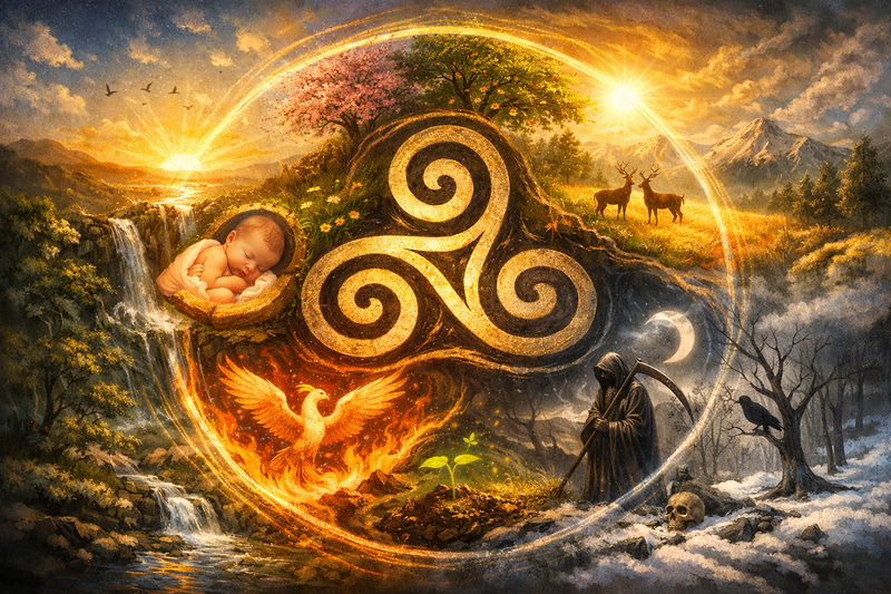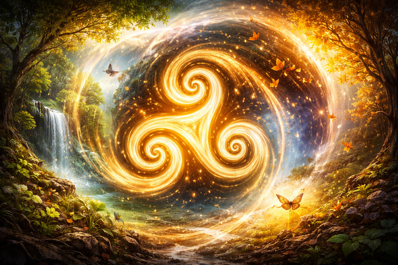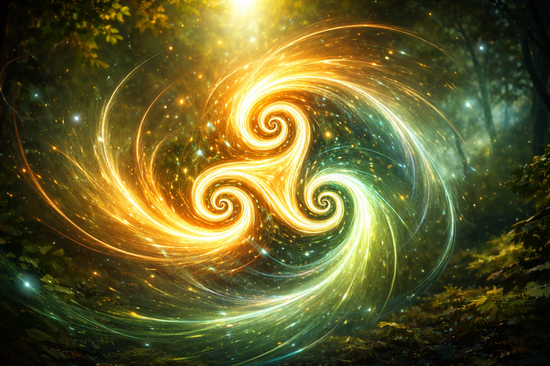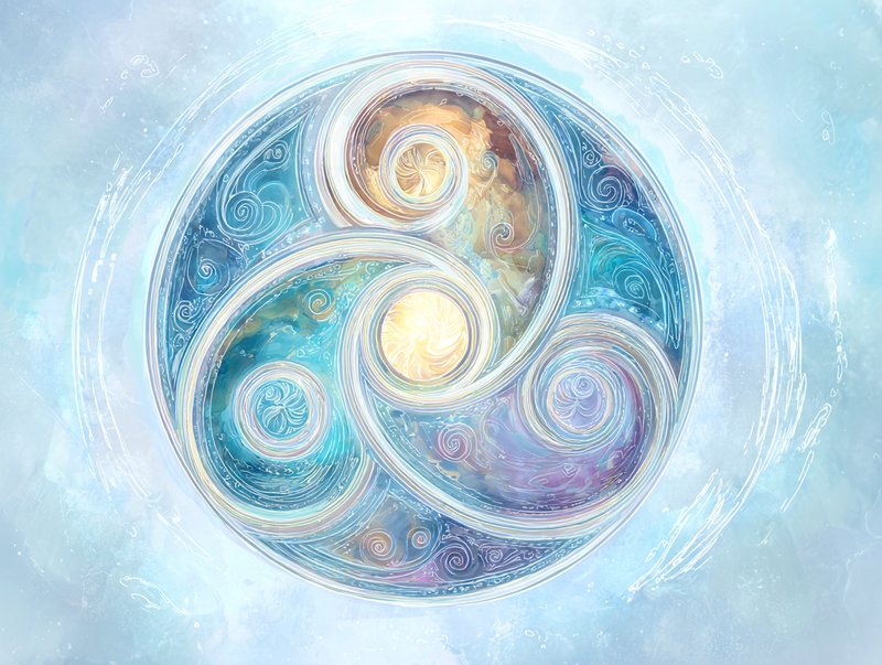 Mais sa portée ne s’arrête pas à une lecture naturaliste. Le Triskel est également un support de croyances spirituelles. Il permet de penser l’équilibre entre différentes dimensions de l’existence, souvent organisées en triades : corps, esprit, âme ; passé, présent, futur ; monde terrestre, monde céleste, monde invisible. Ces triplicités ne sont pas opposées, mais interdépendantes, et le Triskel en illustre l’harmonie dynamique.