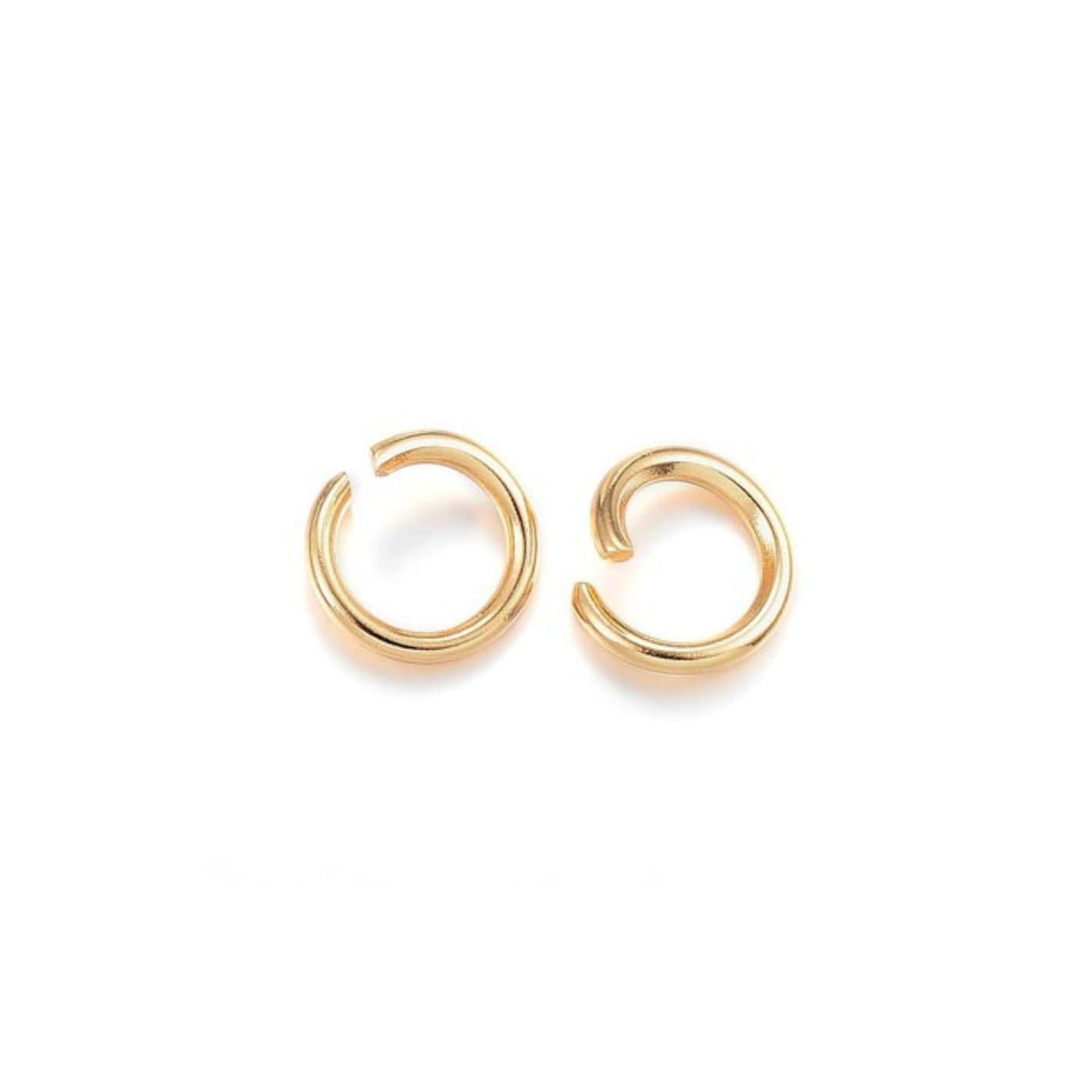 Découvrez ces Anneaux Non Soudés en Acier Inoxydable Or (Placage Ionique)  parfaits pour vos créations de bijoux. Leur placage ionique doré offre une élégance durable, tandis que l'acier inoxydable garantit une grande résistance. Ouvrez et fermez facilement ces anneaux pour créer des designs uniques. Ajoutez une touche dorée à vos créations avec ces Anneaux non soudés acier inoxydable or (Placage Ionique).