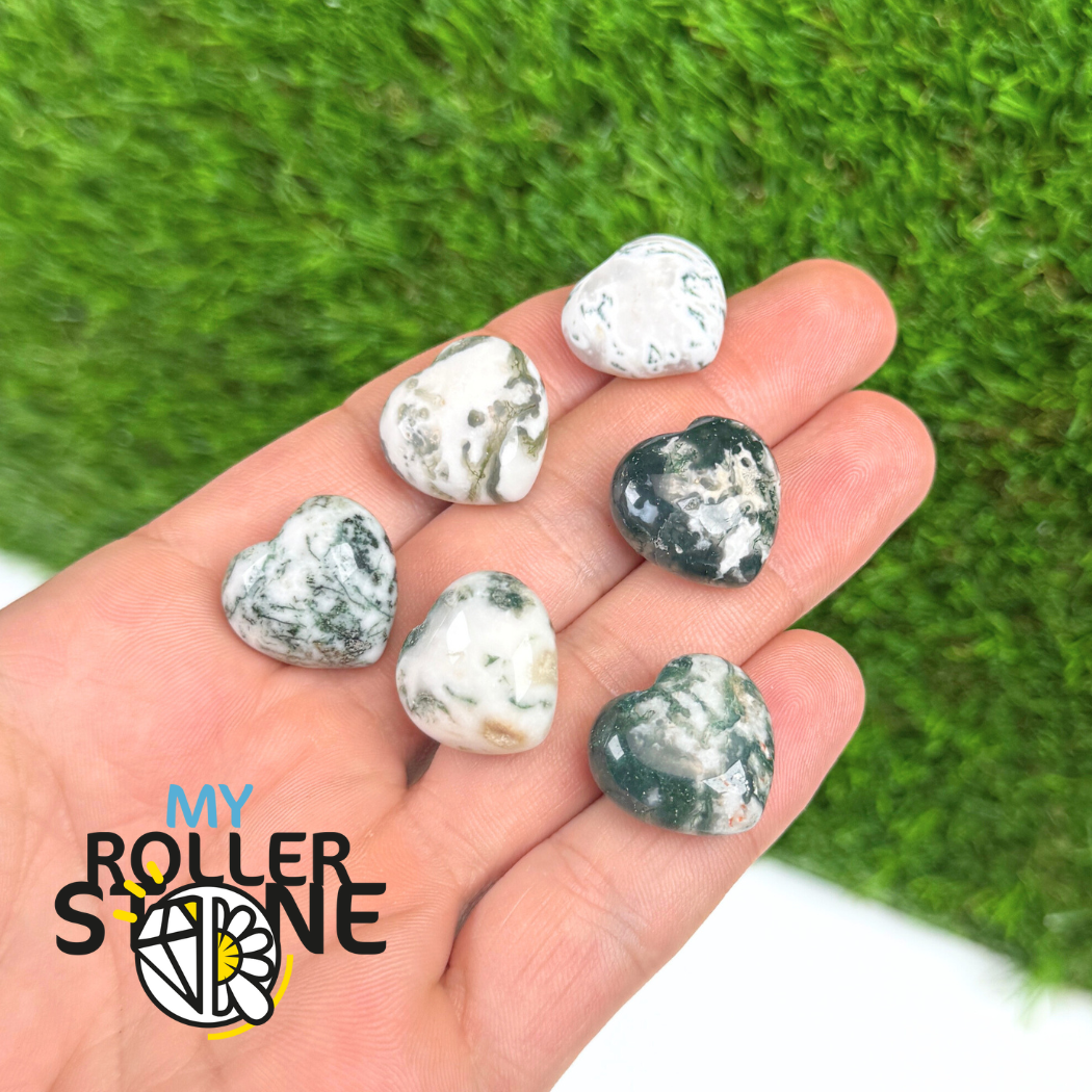 L’Agate Arbre est une variété d’agate caractérisée par des inclusions minérales rappelant des formes végétales. Les cœurs proposés proviennent d’Inde, région reconnue pour la finesse et l’esthétique naturelle de ses agates. La taille en forme de cœur met en valeur la singularité de chaque motif, rendant chaque pièce unique.