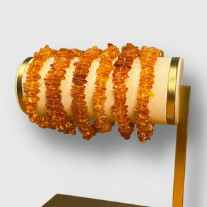 Ce bracelet d'ambre possède de belles chips d'ambre de couleur Miel! Il peut-être utilisé pour la création de bijoux ou être porté directement!
