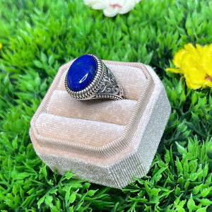 La monture en argent sterling 925 garantit une finition de haute qualité, mettant en valeur les nuances riches et profondes du Lapis Lazuli, avec ses éclats dorés rappelant un ciel étoilé. Disponible dans différentes tailles, cette bague s'ajuste parfaitement à votre doigt pour un confort optimal.