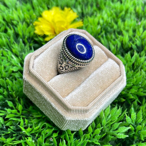 La monture en argent sterling 925 garantit une finition de haute qualité, mettant en valeur les nuances riches et profondes du Lapis Lazuli, avec ses éclats dorés rappelant un ciel étoilé. Disponible dans différentes tailles, cette bague s'ajuste parfaitement à votre doigt pour un confort optimal.