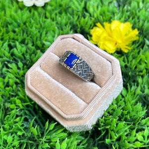 La monture en argent sterling 925 garantit une finition de haute qualité, mettant en valeur les nuances riches et profondes du Lapis Lazuli, avec ses éclats dorés rappelant un ciel étoilé. Disponible dans différentes tailles, cette bague s'ajuste parfaitement à votre doigt pour un confort optimal.