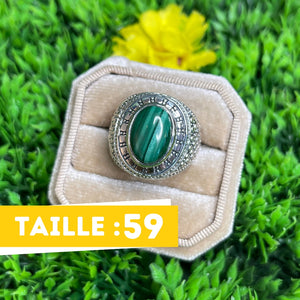 La monture en argent sterling 925 offre une finition exceptionnelle, mettant en valeur les riches teintes vertes de la Malachite, avec ses motifs tourbillonnants uniques qui captivent le regard. Disponible dans différentes tailles, cette chevalière s'ajuste confortablement pour un port agréable.