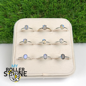 Cette bague solitaire en Labradorite naturelle montée en argent 925 met en valeur une gemme ovale de 5 x 7 mm. Son design épuré souligne les reflets changeants caractéristiques de la labradorite et offre un bijou élégant, mystérieux et lumineux.