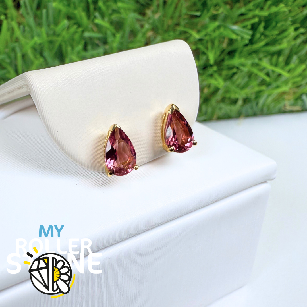 Boucles d’Oreilles en Tourmaline Rose Taille Goutte Facettée et Argent 925 Plaqué Or 18K – Raffinement & Féminité