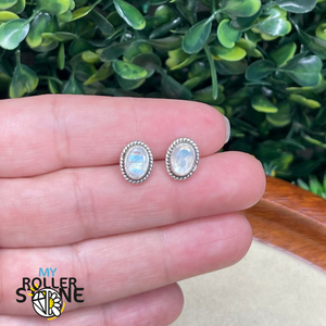Couleur et Apparence : La Pierre de Lune Arc-en-Ciel présente une base translucide à opaque avec des reflets qui peuvent varier du bleu, violet, vert, jaune et parfois même orange. Ces reflets sont dus à la diffusion de la lumière à travers les fines couches internes de la gemme, appelée phénomène d'adularescence ou d'iridescence.