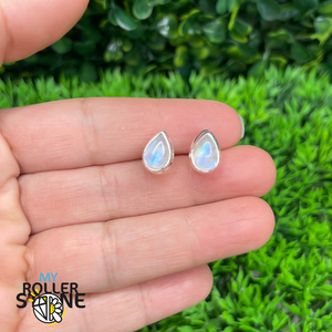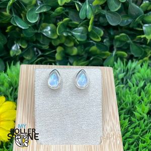Boucles d'oreilles Pierre de Lune Arc-en-Ciel puce goutte serti #14