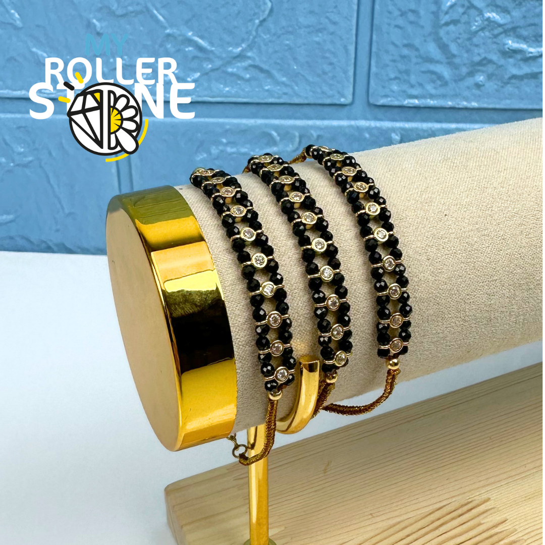 Ce bracelet tressé en acier inoxydable doré allie finesse artisanale et éclat moderne. Composé de perles naturelles et d’éléments sertis de strass lumineux, il offre un équilibre parfait entre élégance et originalité.