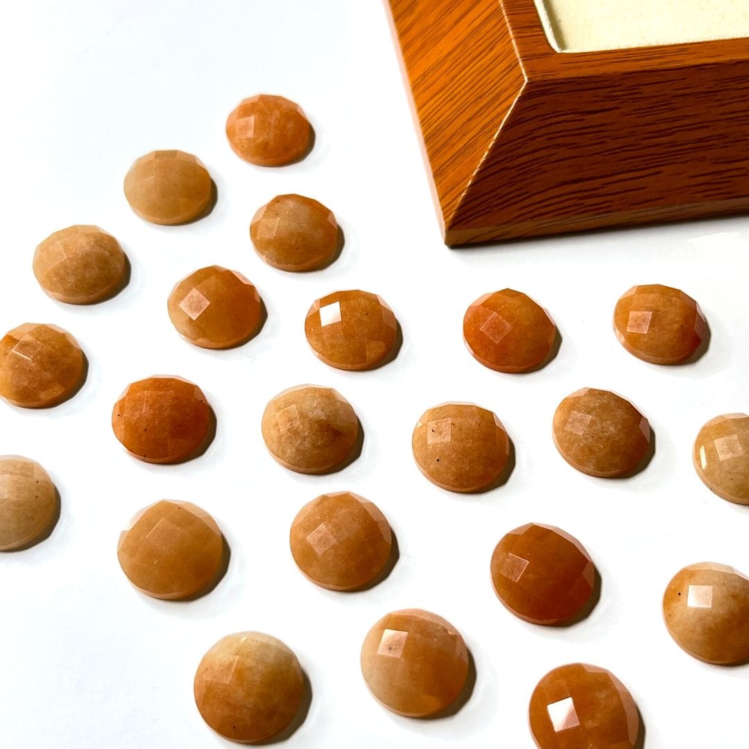Ce cabochon facetté rond en Aventurine Rouge est adapté pour la confection de bijoux tels que pendentifs, boucles d'oreilles, bagues et bracelets, mais peut aussi être utilisé en décoration d'objets.