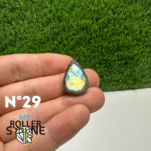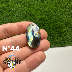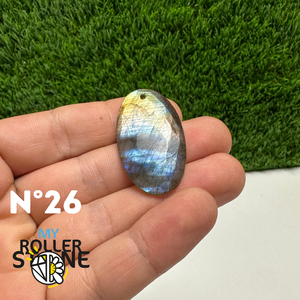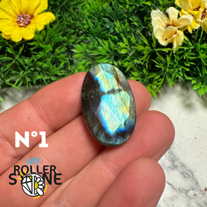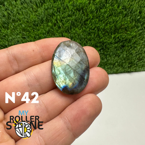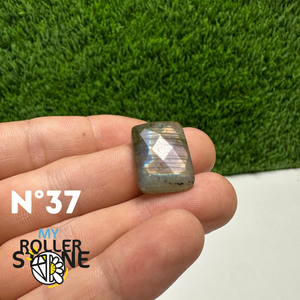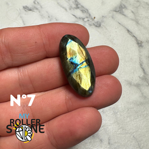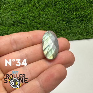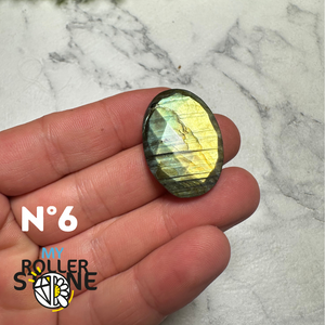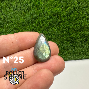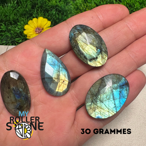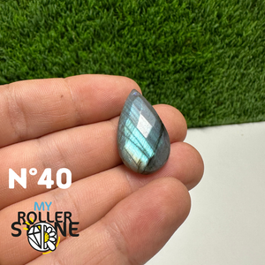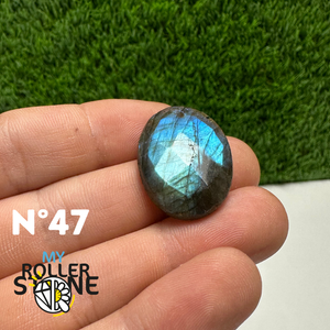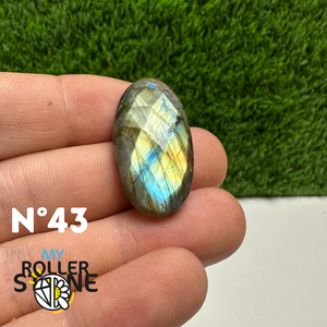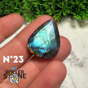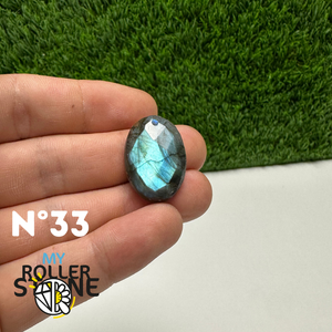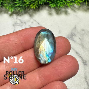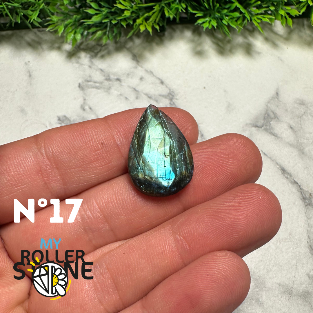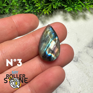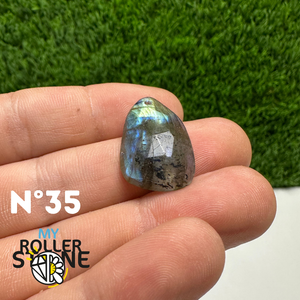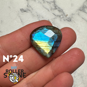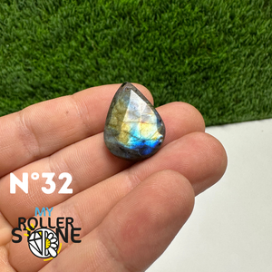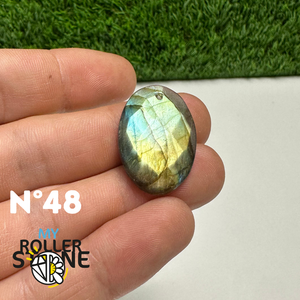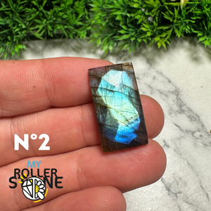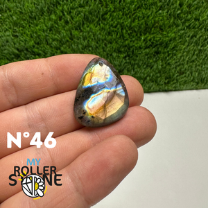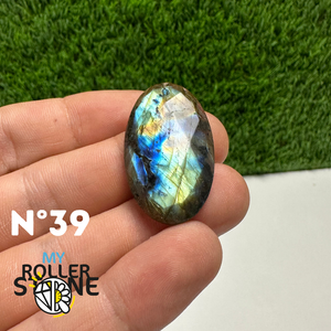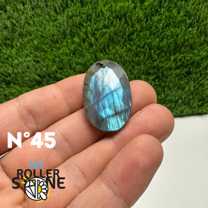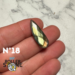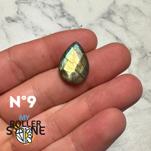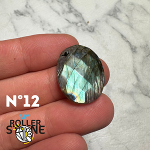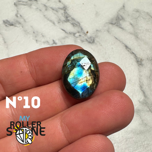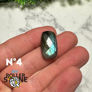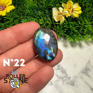 forme libre facettée, une pierre naturelle dont la labradorescence – bleue, verte, dorée ou violette – semble faire danser la lumière sous chaque facette. Véritable œuvre d’art minérale, chaque
