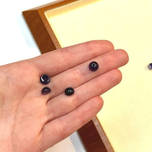 Le Cabochon Rond Améthyste Africaine (Grade A) est une pierre fine naturelle de couleur violet foncé, taillée en forme ronde et polie pour un éclat lisse et brillant. Cette pierre est extraite en Afrique, où les gisements sont connus pour produire des améthystes de qualité exceptionnelle.