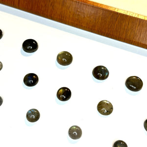 Ce Cabochon Rond Labradorite (Grade A) est un joyau naturel aux teintes gris-vert qui ajoutera une touche unique à toutes vos créations. Cette pierre précieuse est taillée en un magnifique cabochon rond, qui fait ressortir les nuances chatoyantes et les inclusions naturelles de la Labradorite.