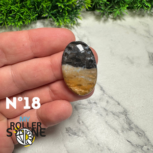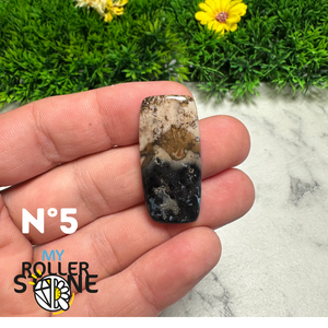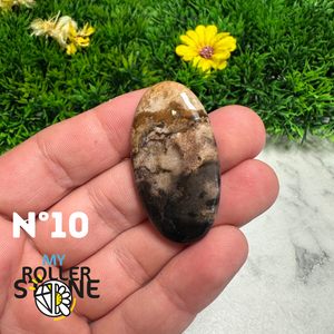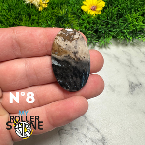 Découvrez toute la subtilité naturelle de cette , une pierre fine réputée pour ses motifs brumeux et ses teintes apaisantes. Chaque cabochon présente un décor minéral unique, semblable à un paysage lointain ou à un ciel nuageux, formé naturellement par les inclusions de fer et de manganèse.