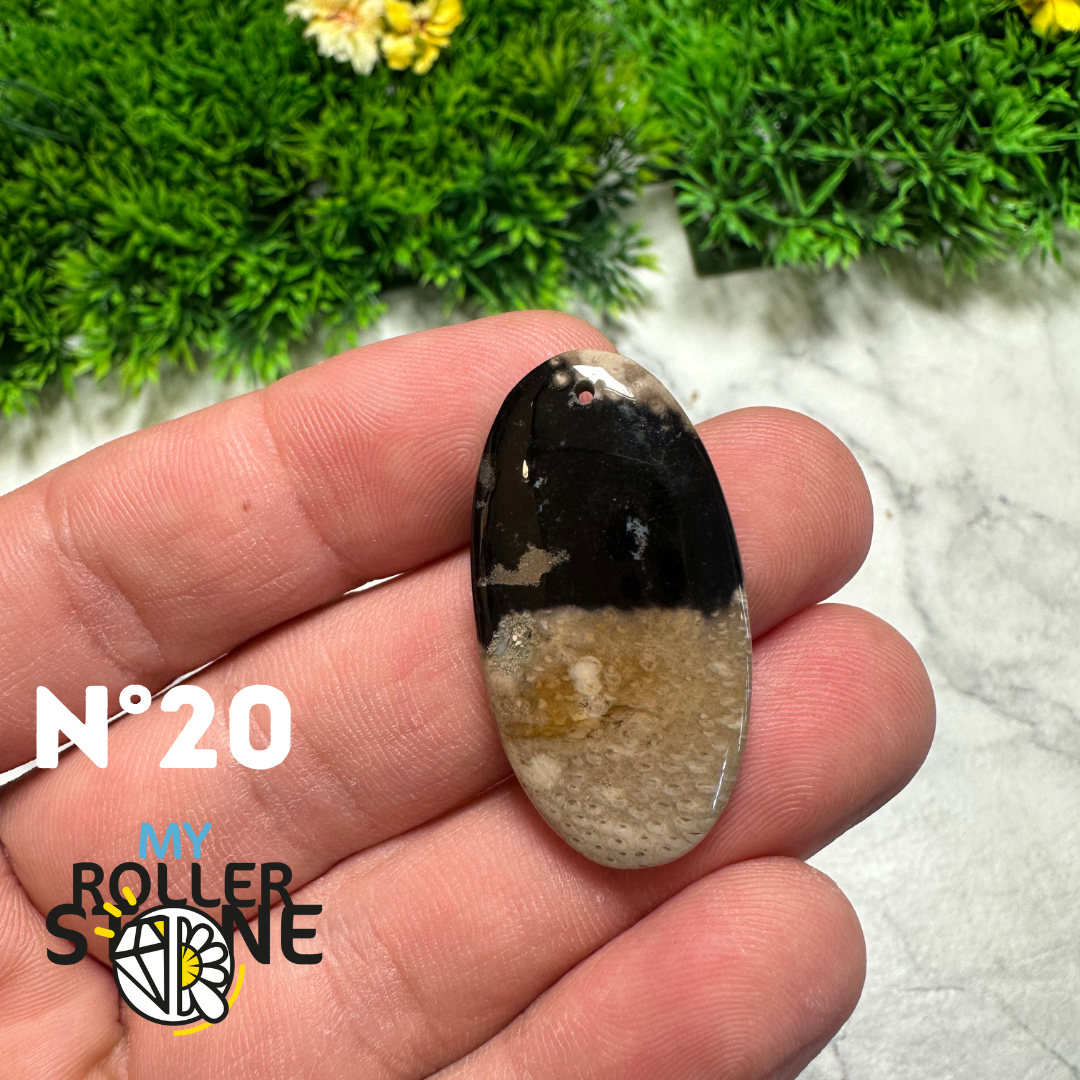 Agate Racine de Palmier, une pierre naturelle fascinante issue de la fossilisation de racines de palmiers anciens. Chaque pièce révèle des motifs vivants, entre nervures végétales et formes abstraites, figés dans la pierre au fil des millénaires.