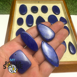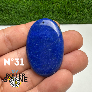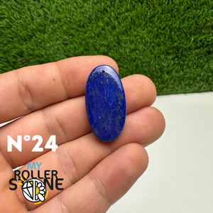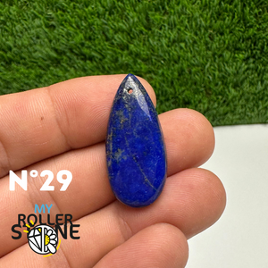 Lapis-Lazuli naturel, taillé en forme libre et poli à la main. Sa teinte bleu intense, rehaussée d’éclats dorés de pyrite, évoque un ciel étoilé par une nuit d’été.