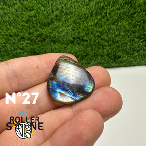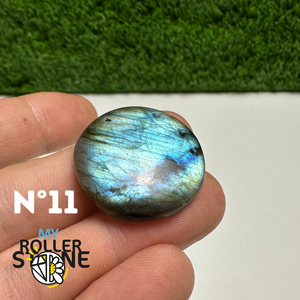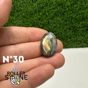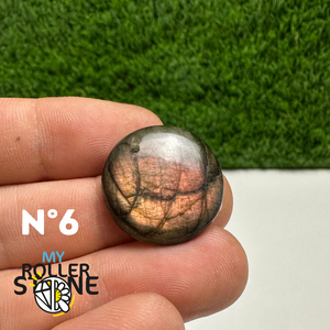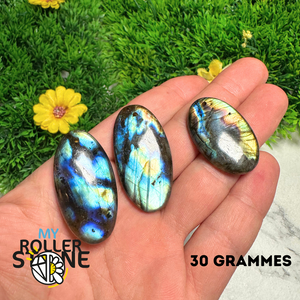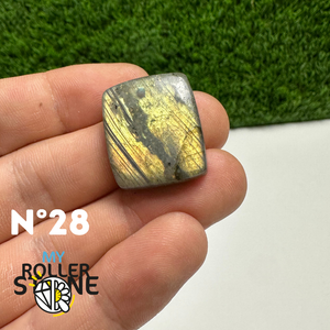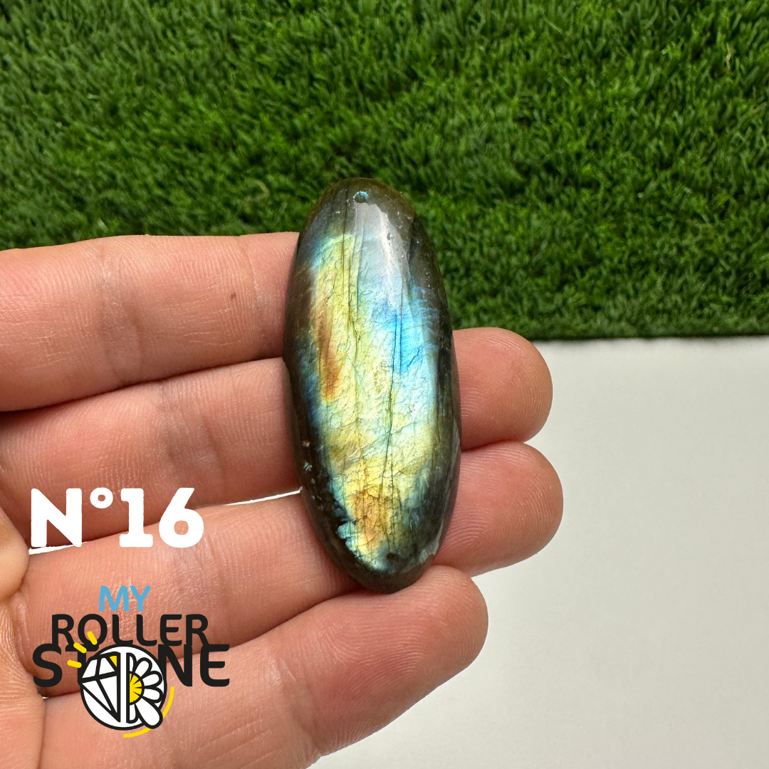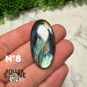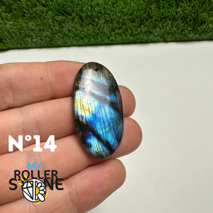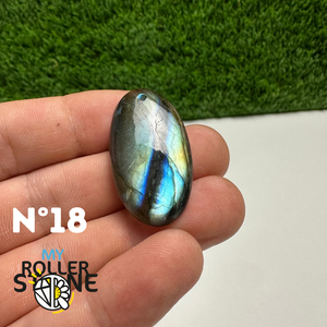 La Labradorite est un feldspath plagioclase découvert au XVIIIᵉ siècle sur la péninsule du Labrador, au Canada. Elle est aujourd’hui principalement extraite à Madagascar, au Canada et en Finlande (spectrolite). Sa surface grise à gris sombre révèle, après polissage, de saisissants éclats colorés dus à des lamelles internes qui diffractent la lumière.