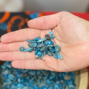 Les Chips Apatite bleue non percées sont utilisées pour la réalisation d'Elixir Minéral, en Feng Shui et pour la décoration intérieure comme extérieur!