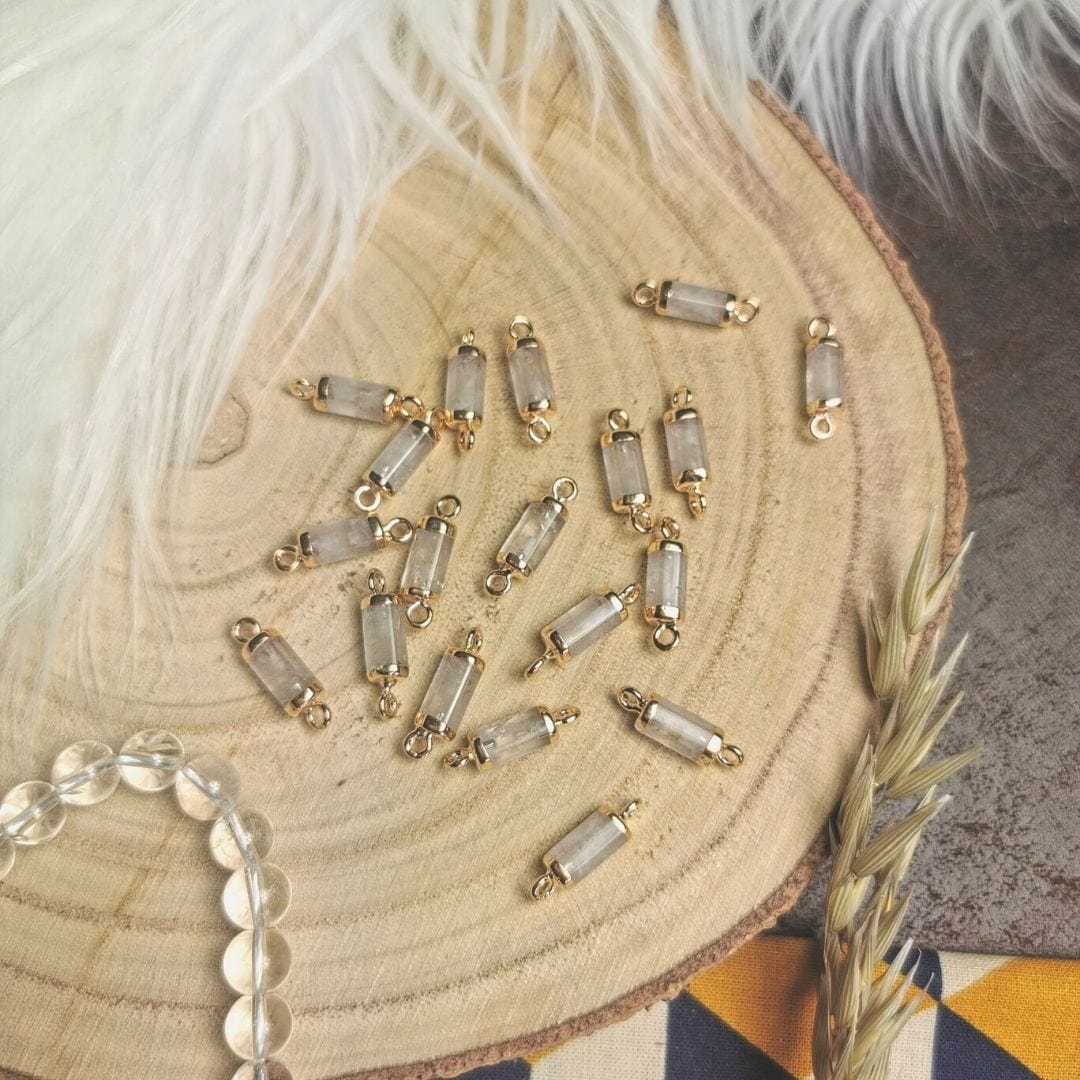 Le Connecteur Cristal de roche est la pièce centrale d'un bracelet, collier et sautoir. Il permet de relier deux extrémités ensemble via un fil élastique, une chaîne ou un cordon pour obtenir des bijoux uniques et créatifs.