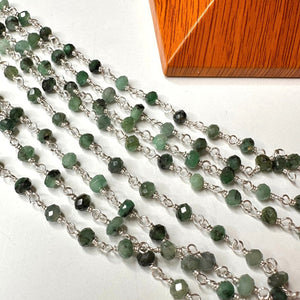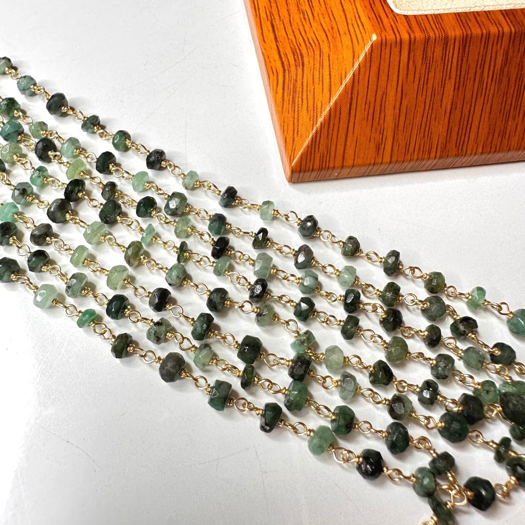 Chaîne perlée Emeraude Argent/Plaqué Or (chaîne nue : sans fermoir et sans anneau)
