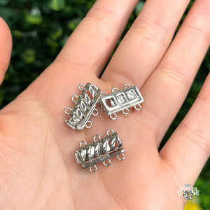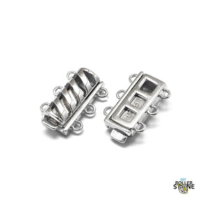 Ce fermoir multi brins permet de sécuriser plusieurs rangs de perles, chaînes ou autres matériaux dans un seul fermoir.  Exprimez votre créativité avec assurance en ajoutant notre Fermoir Multi-brins Argent 925 à votre collection d'apprêts pour bijoux.