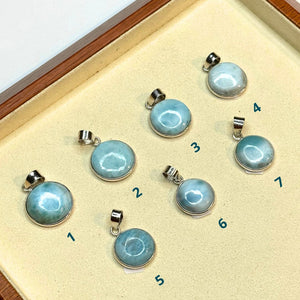 Ce pendentif ajoutera une touche d'élégance intemporelle à toutes vos tenues. Laissez-vous séduire par la beauté naturelle de ce Pendentif Rond Larimar Argent 925.