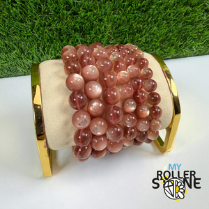 Ce bracelet en Lépidolite Mica rose se distingue par ses nuances lilas-rosées lumineuses et ses micro-paillettes naturelles de mica qui donnent à la pierre un éclat doux et chatoyant. Chaque perle est soigneusement polie pour offrir une finition lisse, élégante et parfaitement adaptée aux créations haut de gamme My Roller Stone.