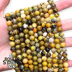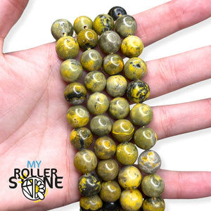 Couleur et Apparence : Cette gemme se distingue par ses bandes jaunes vives et noires, parfois avec des touches de blanc ou de gris. Elle présente une texture souvent opaque à translucide, avec un éclat vitreux à terne. Chaque pièce peut varier légèrement en apparence en fonction de sa composition minéralogique unique.