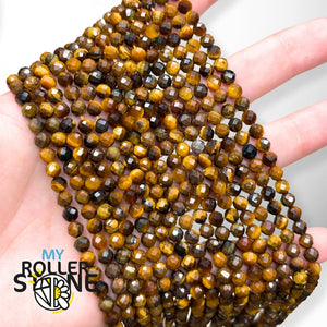 Perles Facettées en Œil de Tigre 3A – Protection, Courage & Énergie