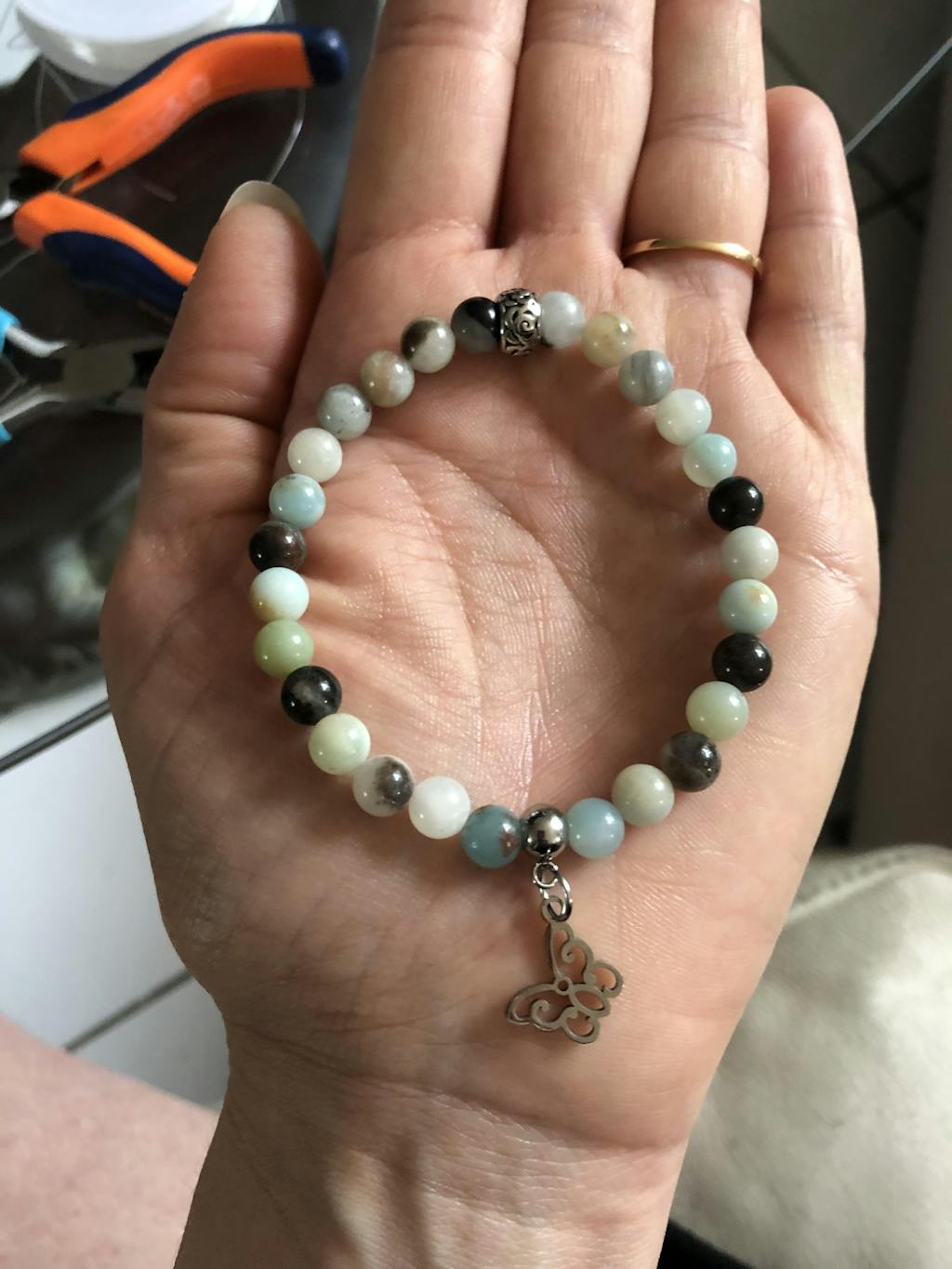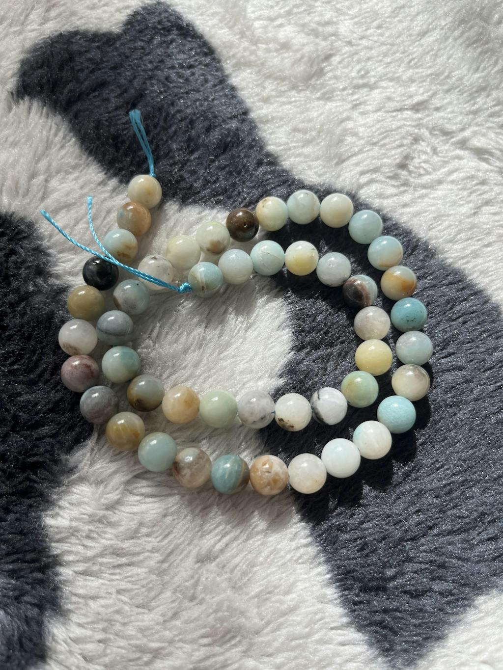 Perles d’Amazonite naturelle de qualité 3A, reconnues pour leurs nuances bleu-vert apaisantes et leur finesse de polissage. Cette pierre douce et harmonieuse est très prisée en bijouterie artisanale pour la création de bracelets, colliers et bijoux énergétiques.