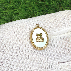 Pendentif délicat composé d’une nacre blanche naturelle sertie dans une monture en acier inoxydable 304, rehaussée d’un petit charm Ourson en véritable placage or 14K. Une pièce élégante et moderne, idéale pour des créations raffinées telles que colliers, sautoirs ou montages minimalistes. Sa finition dorée brillante associe douceur et fantaisie dans un style parfaitement équilibré.