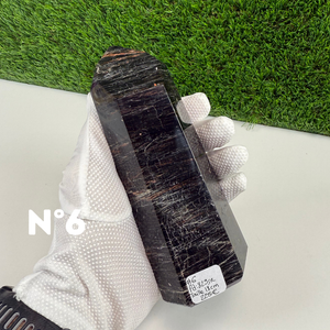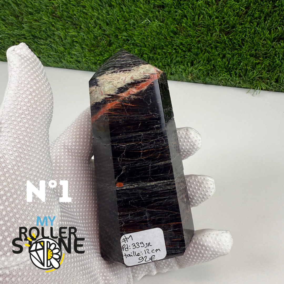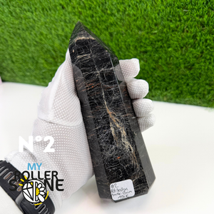 La Tourmaline Noire de cette pointe provient des gisements du Brésil, réputés pour leur pureté et la qualité énergétique de leurs cristaux. Conservant ses striures naturelles et sa texture brute, chaque pointe est polie à l’extrémité pour amplifier la diffusion de l’énergie et canaliser la lumière à travers la pierre.