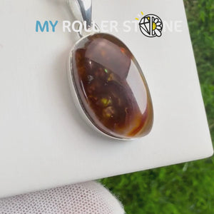 Pendentif Agate de Feu Du Mexique et Argent 925 (MFAP598)