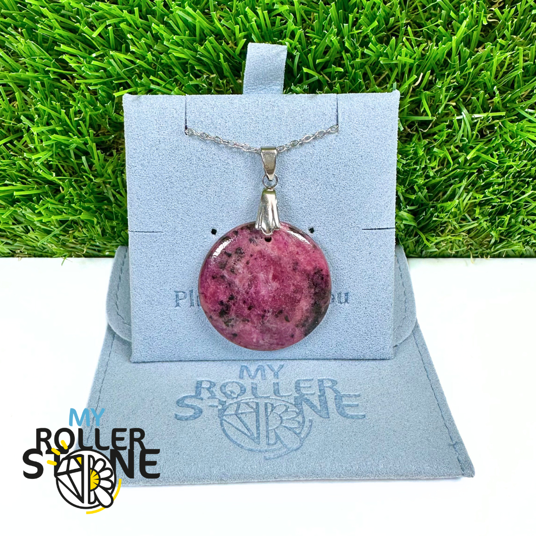 naturellement prélevé sur de la zoïsite, roche hôte dans laquelle il se forme, conférant à chaque pendentif un aspect authentique et minéral. Apprécié depuis l’Antiquité pour sa force symbolique et son intensité visuelle, le rubis apporte caractère et élégance aux créations artisanales et spirituelles.