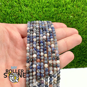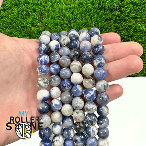 Perles en Sodalite 3A, reconnues pour leurs nuances profondes de bleu traversées de veines blanches caractéristiques. Cette pierre, très prisée en bijouterie, apporte une esthétique raffinée et une énergie apaisante, idéale pour la création de bracelets, colliers et bijoux artisanaux.
