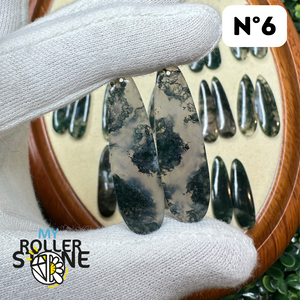 Origine et Aspect : L'Agate Mousse se forme dans les cavités des roches volcaniques, où des minéraux comme la Chlorite s'infiltrent et créent des motifs qui ressemblent à des mousses ou des plantes. Elle est principalement extraite au Brésil, en Inde, en Chine et aux États-Unis.