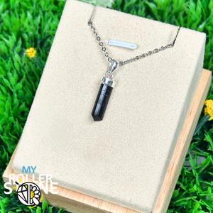 La Tourmaline noire, extraite de gisements en Brésil 🇧🇷 et en Afrique 🇿🇦, est soigneusement taillée et montée sur argent massif 925. Chaque pendentif présente un éclat naturel et une structure cristalline authentique.