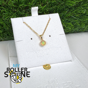 Ce pendentif solitaire en Opale Éthiopienne naturelle monté en argent 925 plaqué or 18K met en valeur une gemme ronde sertie de 8 mm. L’éclat chaleureux du plaqué or souligne les irisations multicolores de l’opale et révèle toute la magie de cette pierre lumineuse.