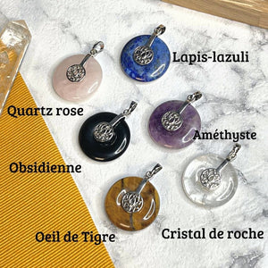 Disponible en 6 variantes de pierres naturelles, chaque pendentif donuts fleur de lotus est naturelle!