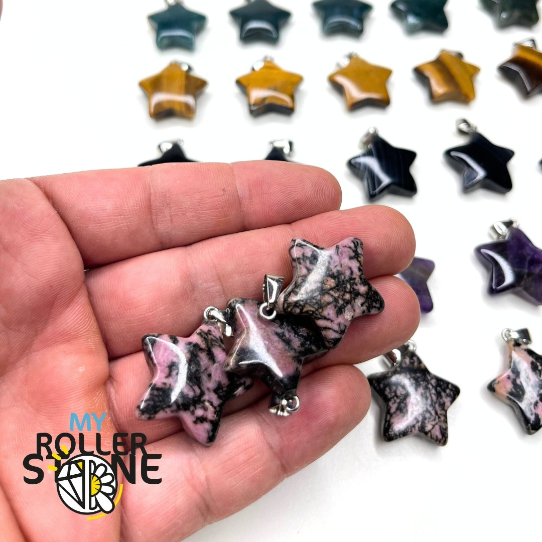 - Pierre : Rhodonite, Quartz rose, Oeil de tigre, Améthyste, Agate noire, Agate mousse