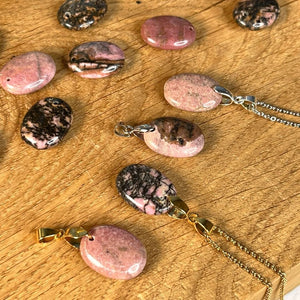 Chaque pendentif en rhodonite possède une forme et une couleur unique!