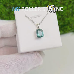 Ce pendentif raffiné en argent massif 925 met en valeur une fluorite naturelle bleu-vert, taillée en coussin facetté. Sa coupe classique et élégante sublime les reflets cristallins de la pierre, allant du bleu clair au vert émeraude profond. Un bijou unique qui allie pureté et sophistication.