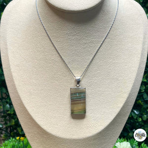 Découvrez notre Pendentif Fluorite Arc en Ciel Argent. Il met en avant une véritable pierre de Fluorite, enchâssée dans un cadre en argent 925, créant ainsi un contraste délicat et élégant. Livré avec une chaîne en acier inoxydable de qualité supérieure, ce bijou assure un éclat qui dure dans le temps.