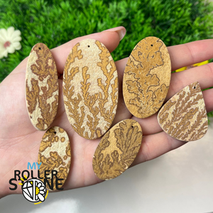 Ce pendentif en Fossile Dendritique naturel est proposé en deux formats pour répondre aux besoins des créateurs et des particuliers :