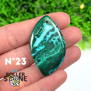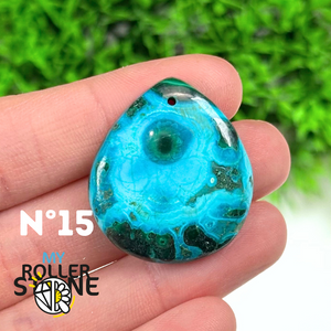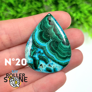 Ce pendentif en Malachite Chrysocolle naturelle 5A associe la profondeur verte de la malachite à l’intensité turquoise de la chrysocolle. Cette combinaison rare crée une pierre d’exception aux motifs organiques uniques, réputée pour apporter équilibre émotionnel, apaisement et énergie positive. Chaque gemme est soigneusement polie et percée, disponible montée ou en pierre brute pour vos créations personnalisées.