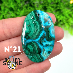 • 🔹 Pierre seule : Malachite Chrysocolle 5A percée, livrée sans montage – idéale pour vos créations artisanales